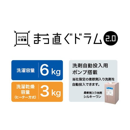 まっ直ぐドラムが回転と静止を繰り返し、高濃度洗剤液を衣類全体に素早く浸透。さらに衣類を高く持ち上げて落とす「たたき洗い」、ドラム壁面を使って手洗いのようにムラなくキレイに「もみ洗い」します。