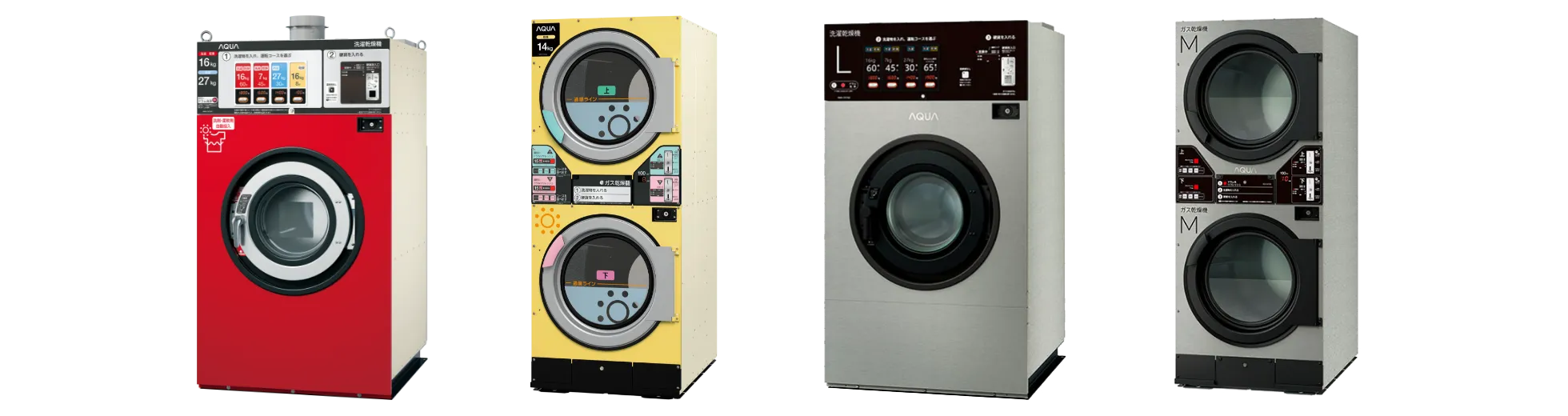 AQUA coin-operated laundry machines have been consistently designed, developed, and manufactured in Japan since 1971.