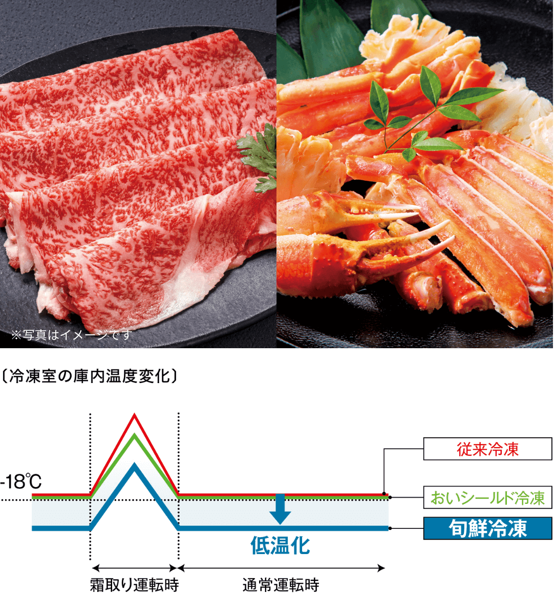 通常(約0℃~約2℃)と微凍(約-3℃~約-1℃)の