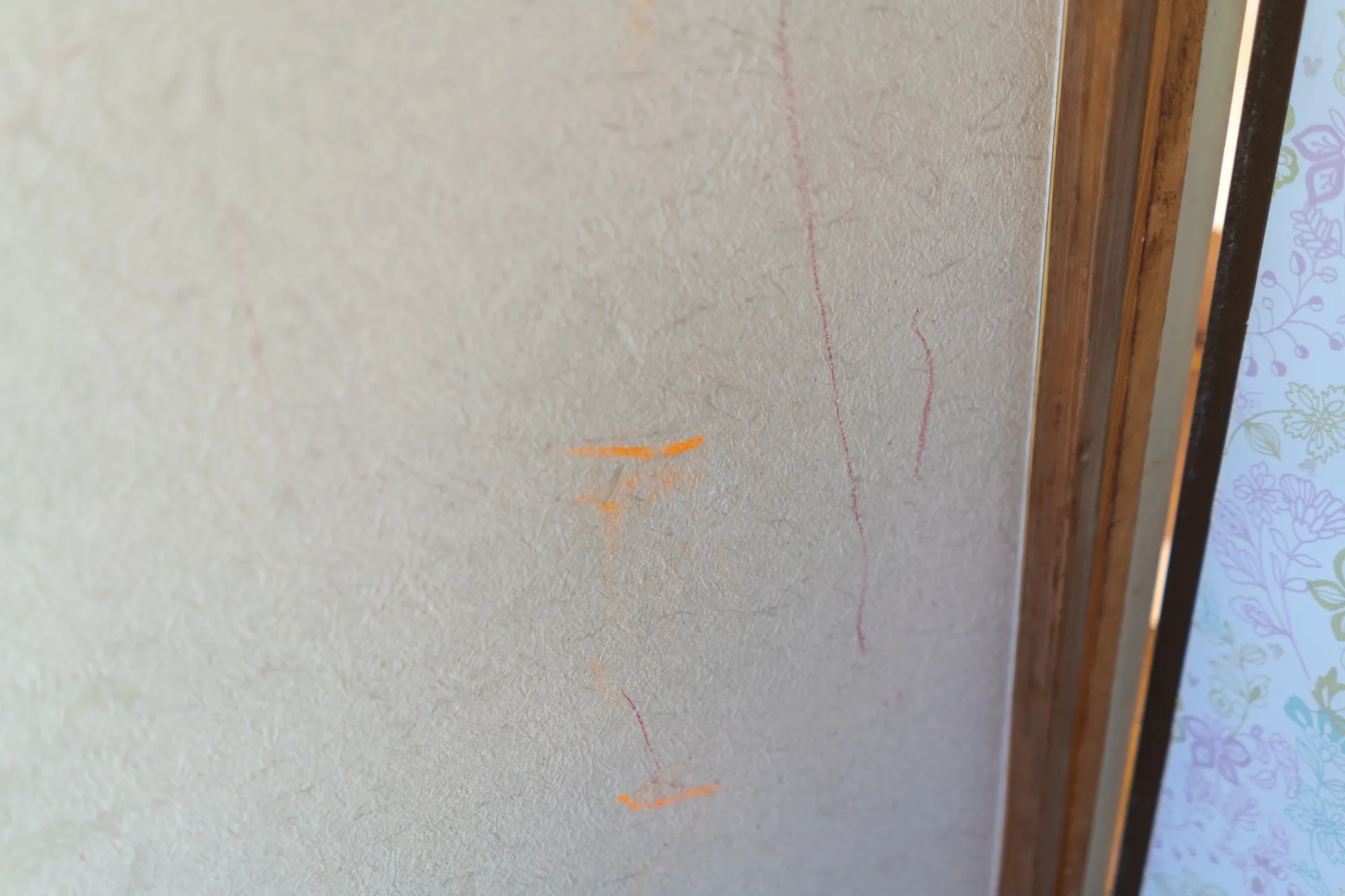 子どもが壁や床などに落書きをしてしまったときも、クレンジングオイルや中性洗剤を含ませた布で拭き取ることで落とせますが、素材によっては残ってしまうことも。