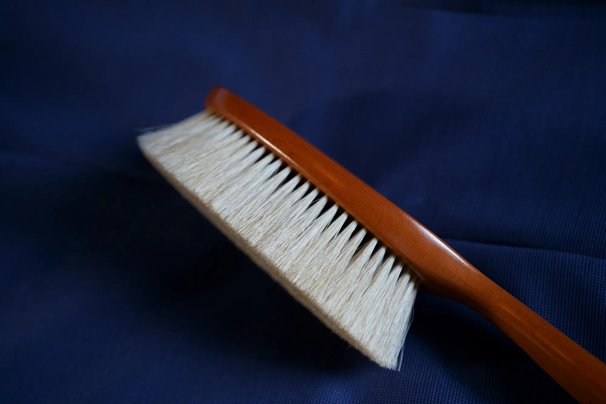 着用後は、柔らかい衣類用のブラシを使用して、優しくホコリを払い落します。