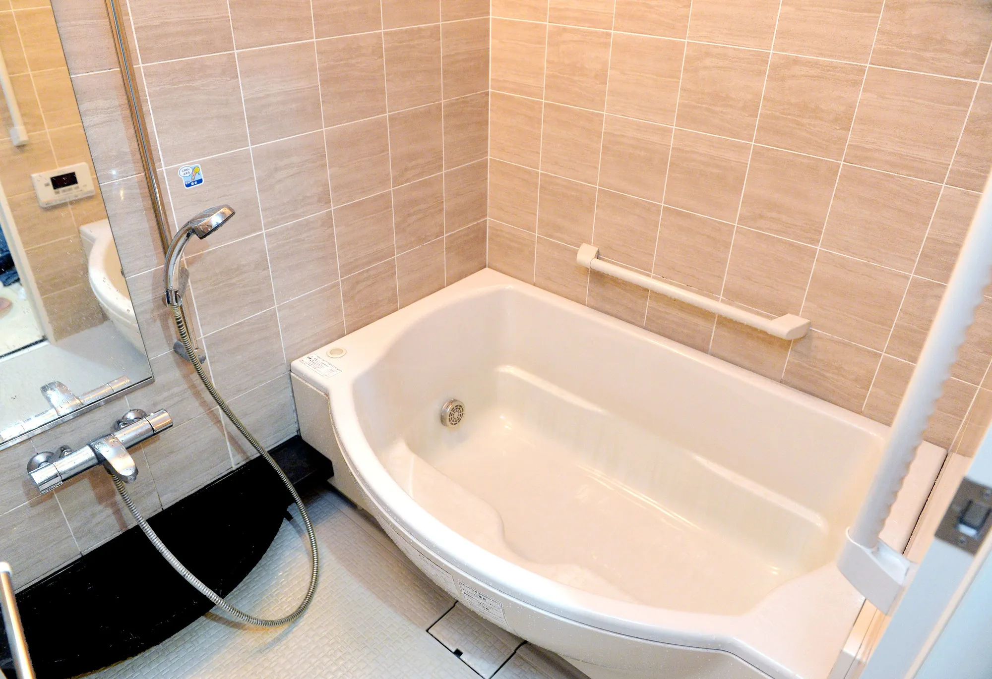 STEP4.すすぎが終わったら、浴槽のフチなどに立てかけて水気を切る