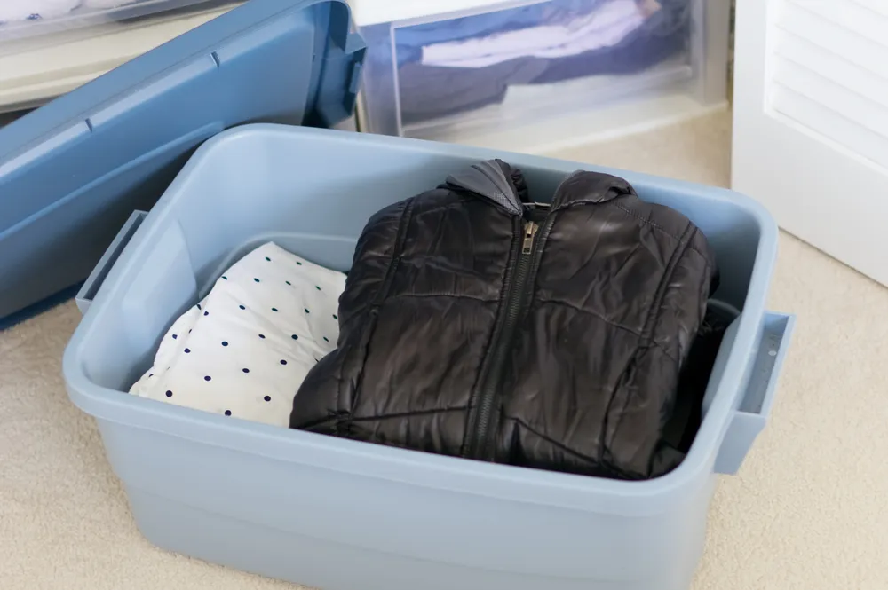 保管時は、ふんわりとたたんで収納ケースに入れるか、通気性の良い不織布カバーなどをかけてクローゼットに吊るしましょう。