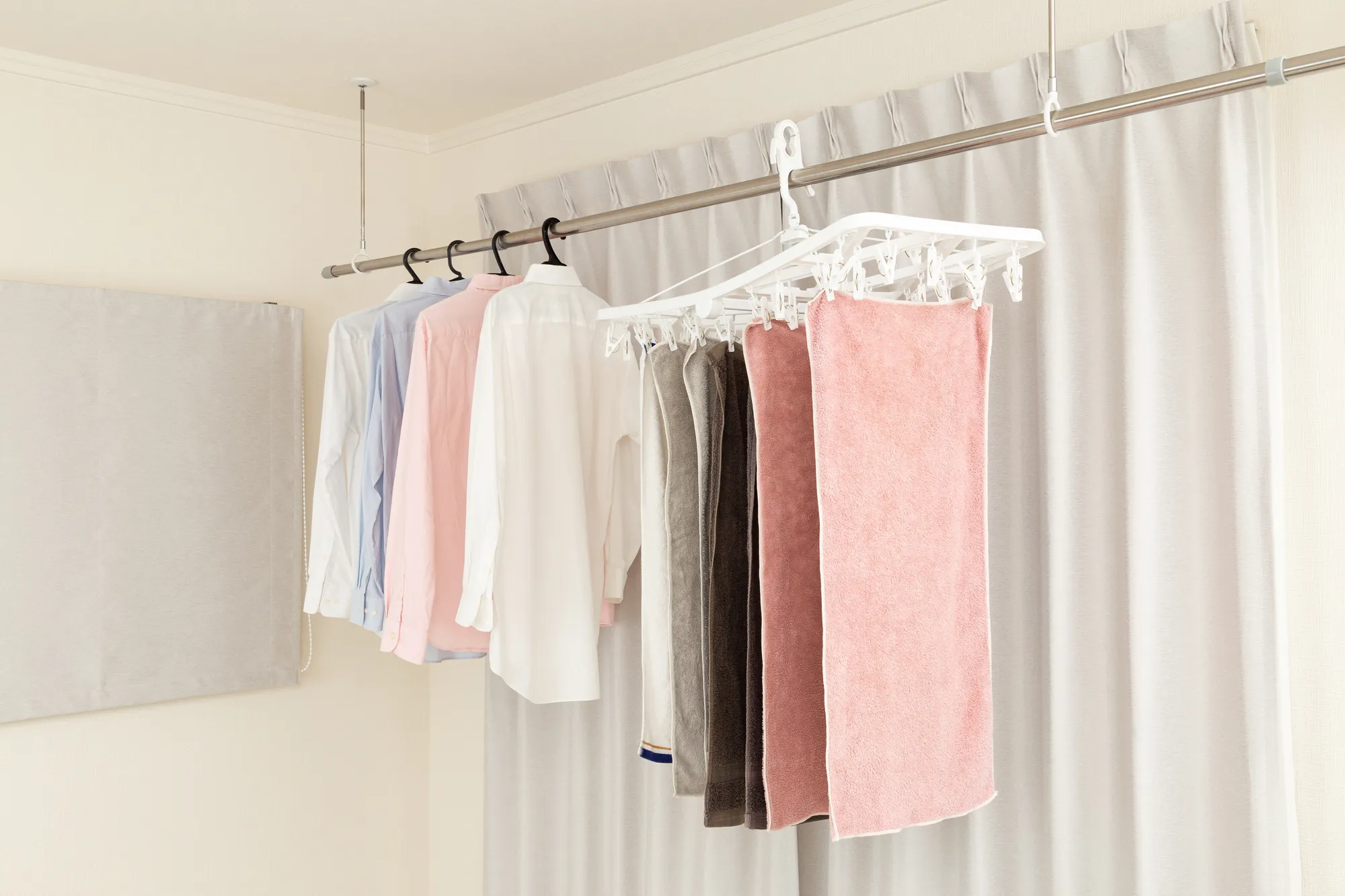 乾くまでの時間はかかりますが、温風が当たったり、摩擦が発生したりすることがなく、衣類に最も負担がかからない乾燥方法といえるでしょう。