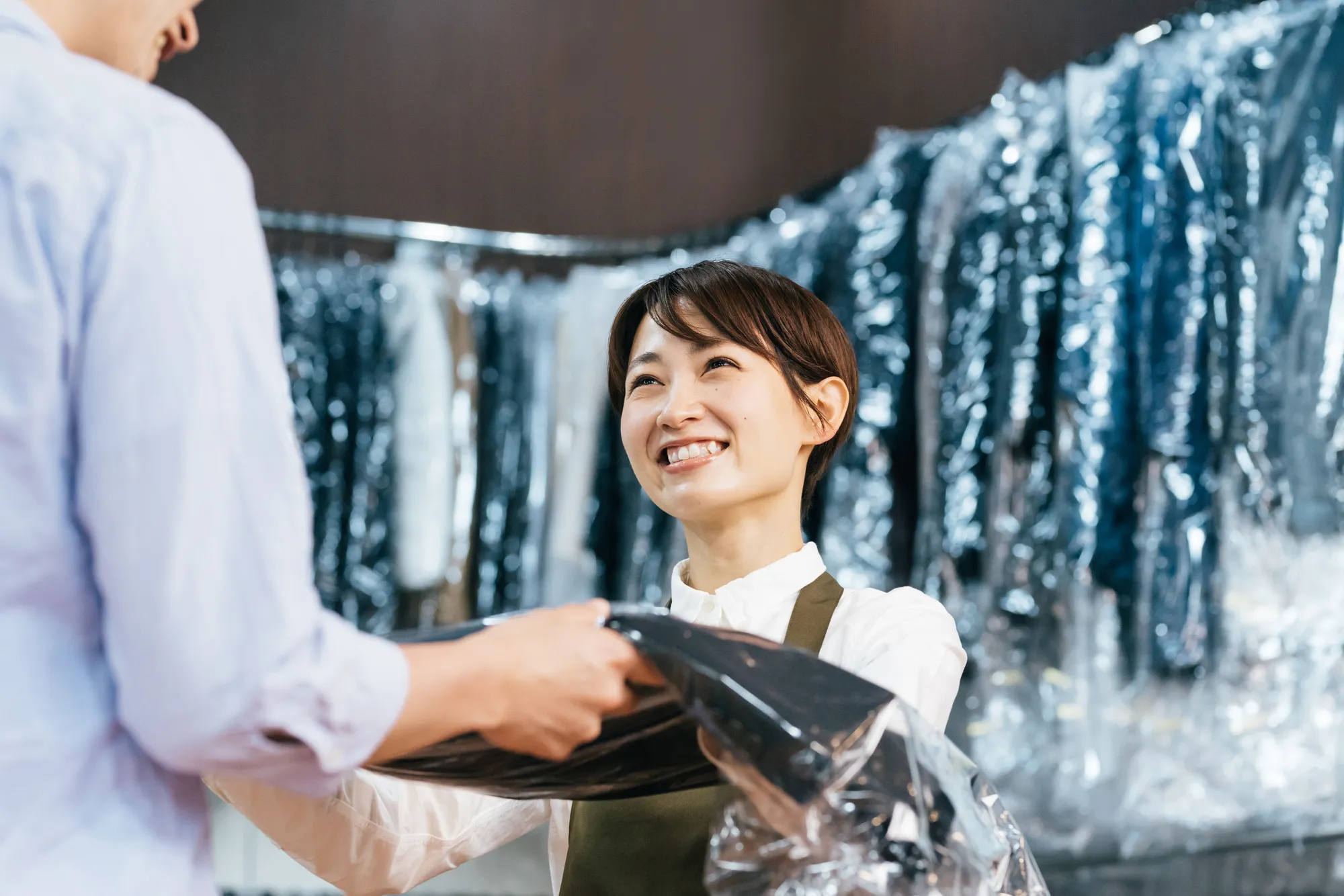 自宅でのシミ抜きでは落としきれなかったシミや、水洗いができない素材の衣類は、無理をせずクリーニング店に相談しましょう。