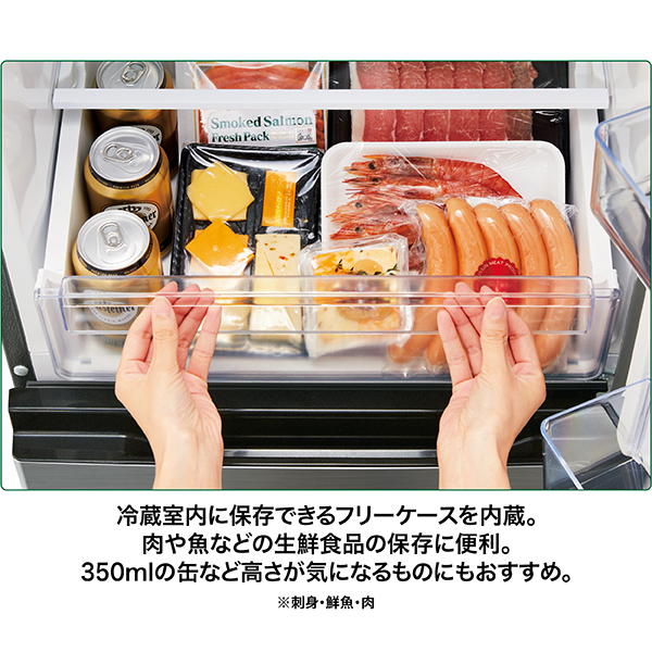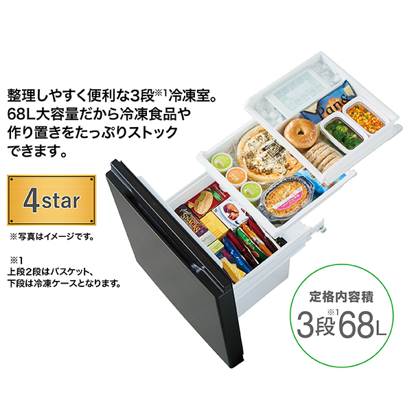 大容量68L、3段構造の引き出しタイプの冷凍室