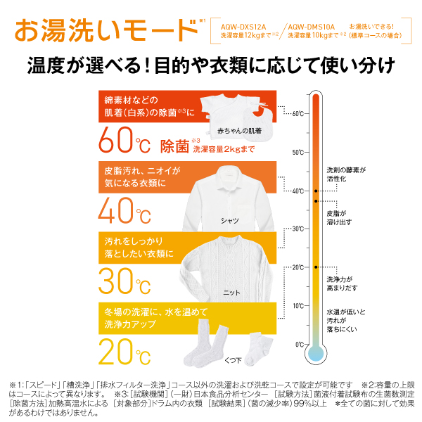 黄ばみをキレイに、除菌※3もできる「お湯洗いモード」