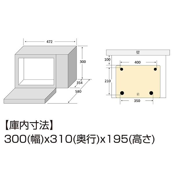 庫内寸法:幅300㎜×奥行310㎜×高さ195㎜の広々庫内