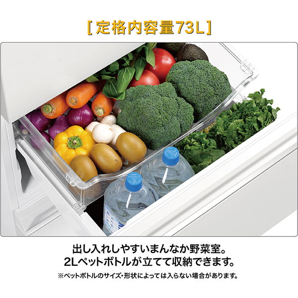 チェックアイコン 2Lペットボトルを立てて収納できる真ん中野菜室