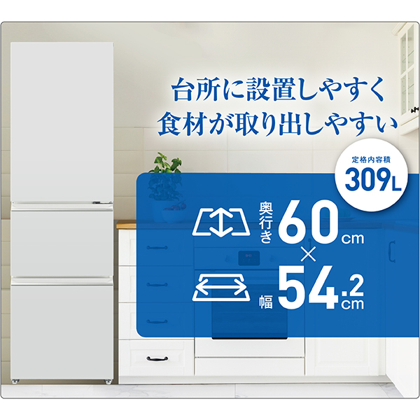 チェックアイコン 幅54.2cm×奥行60cmキッチンに収まるコンパクト設計