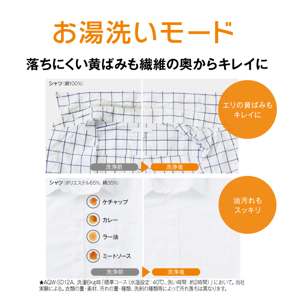 黄ばみ※2を落とし除菌※3もできる「お湯洗いモード」※4